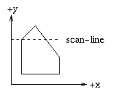 How are horizontal lines filled in then, you ask? Since each horizontal line meets exactly two other edge end-points on the scan-line, the algorithm will allow a fill of the pixels between those two end-point vertices when filling on the scan-line which the horizontal line is on, if it meets the top vs. bottom edge criteria.