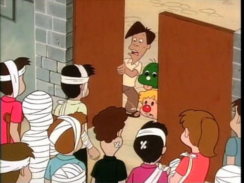 둘리가 사고 쳐서 사람들이 쫓아옴